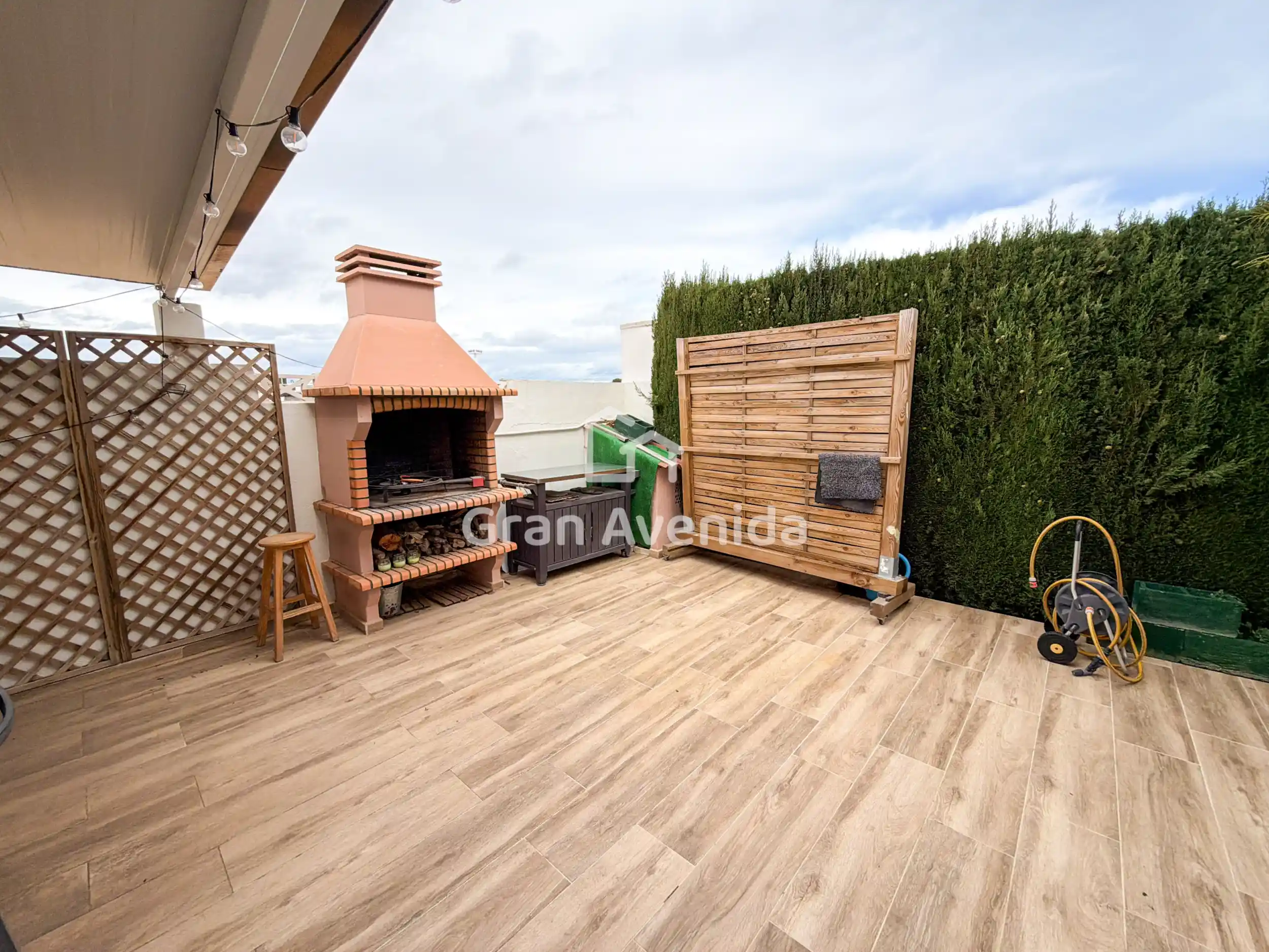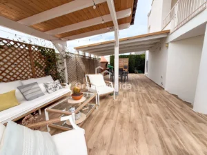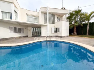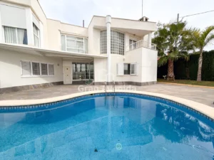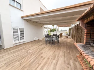 La casa se asienta sobre una parcela con jardín que rodea la vivienda y piscina privada, creando un espacio exterior muy agradable para disfrutar durante todo el año. En el exterior encontramos además una zona de pérgola y paellero, un espacio muy acogedor y funcional, con acceso directo desde la cocina, perfecto para reuniones familiares y comidas al aire libre.