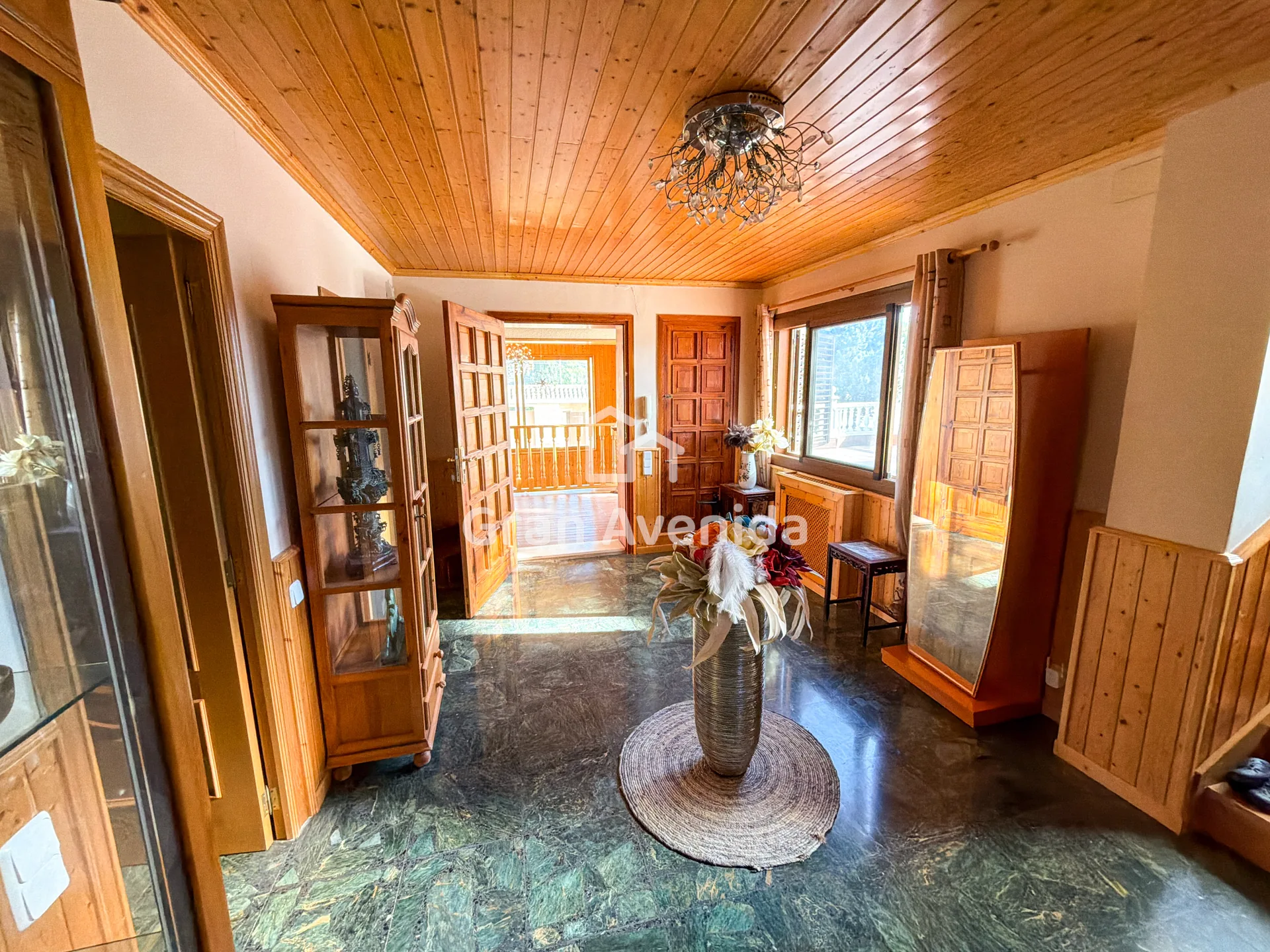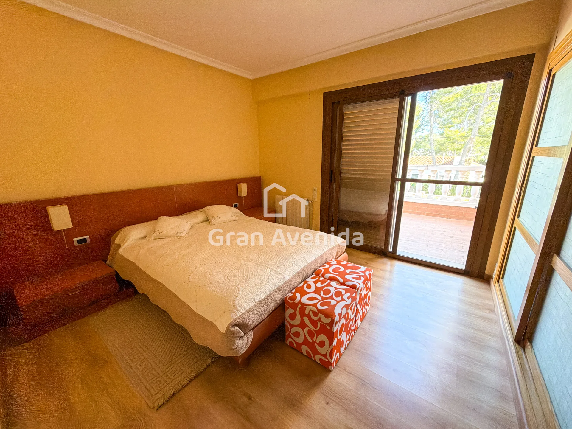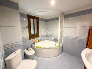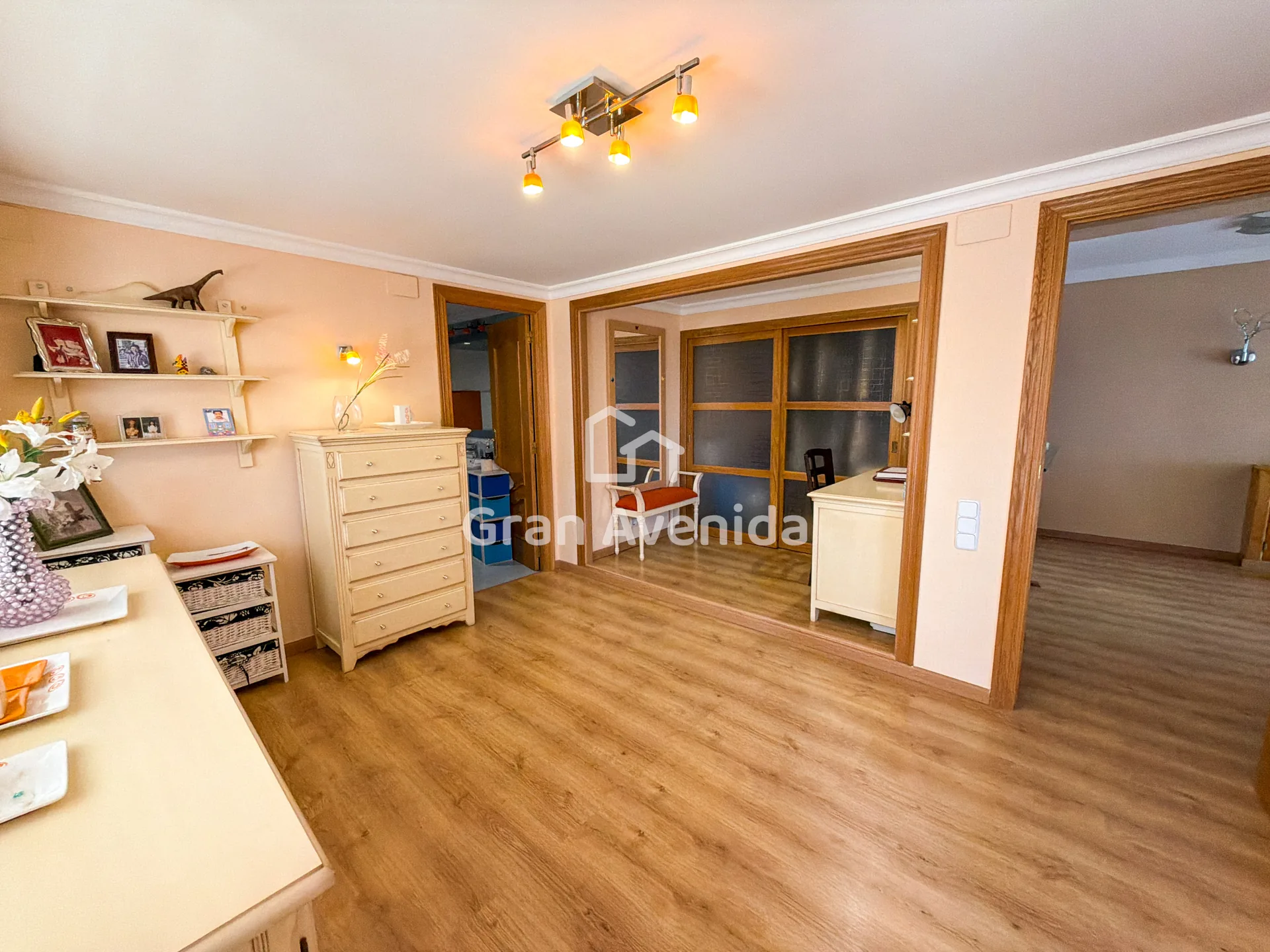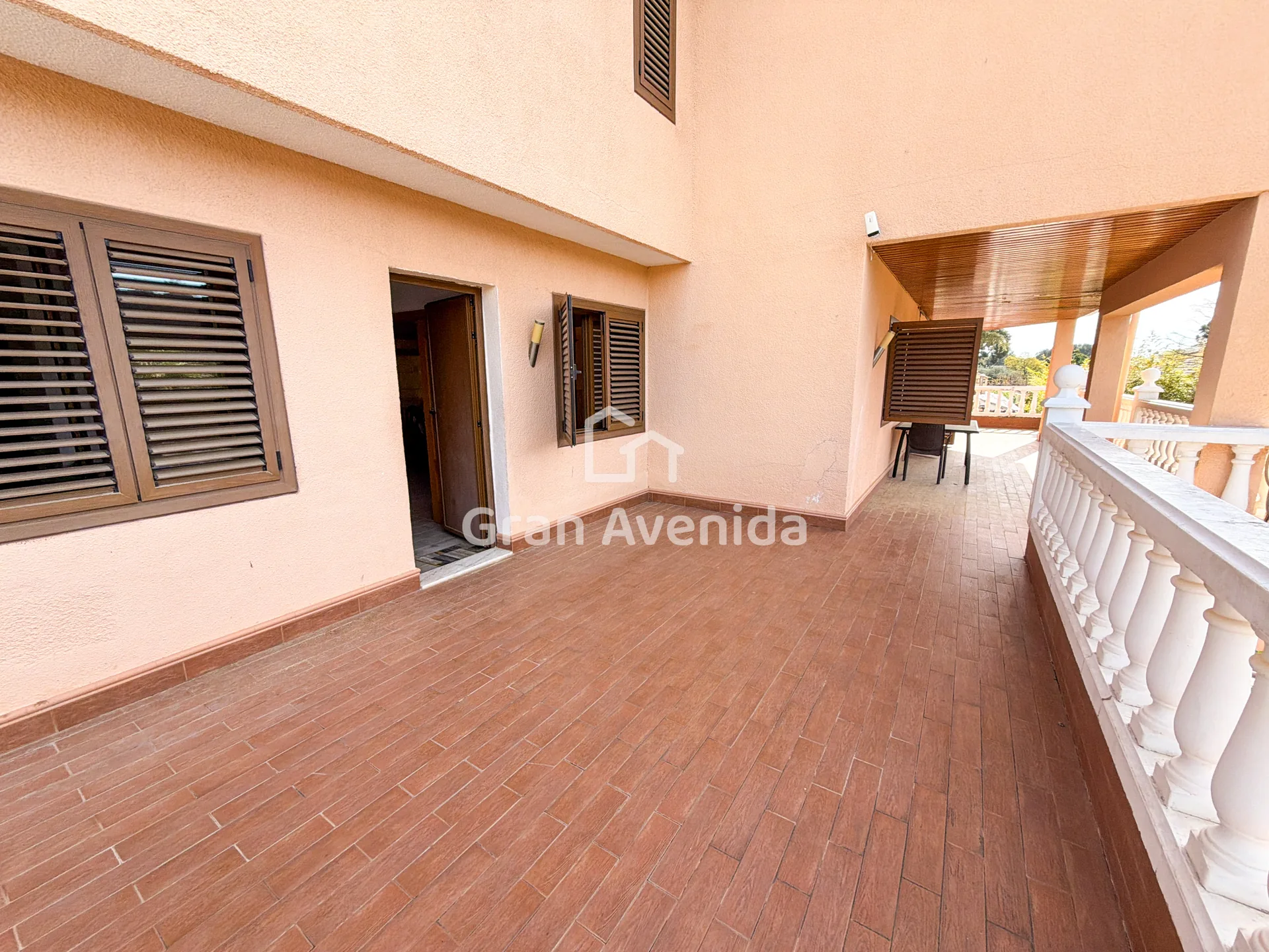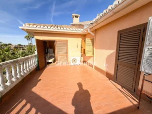 En la planta superior la vivienda se organiza en tres zonas independientes con un total de siete dormitorios, varios de ellos con acceso a terraza, tres baños completos y distintas zonas de estar. Una distribución con mucha capacidad, adaptable a diferentes necesidades familiares.