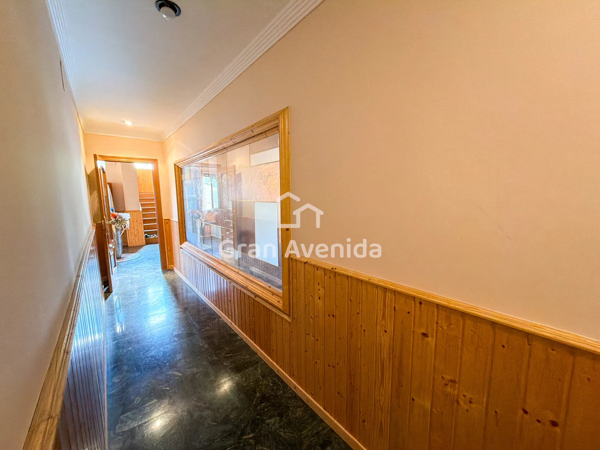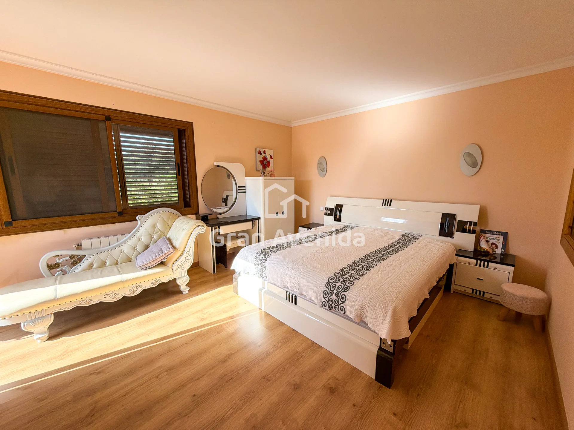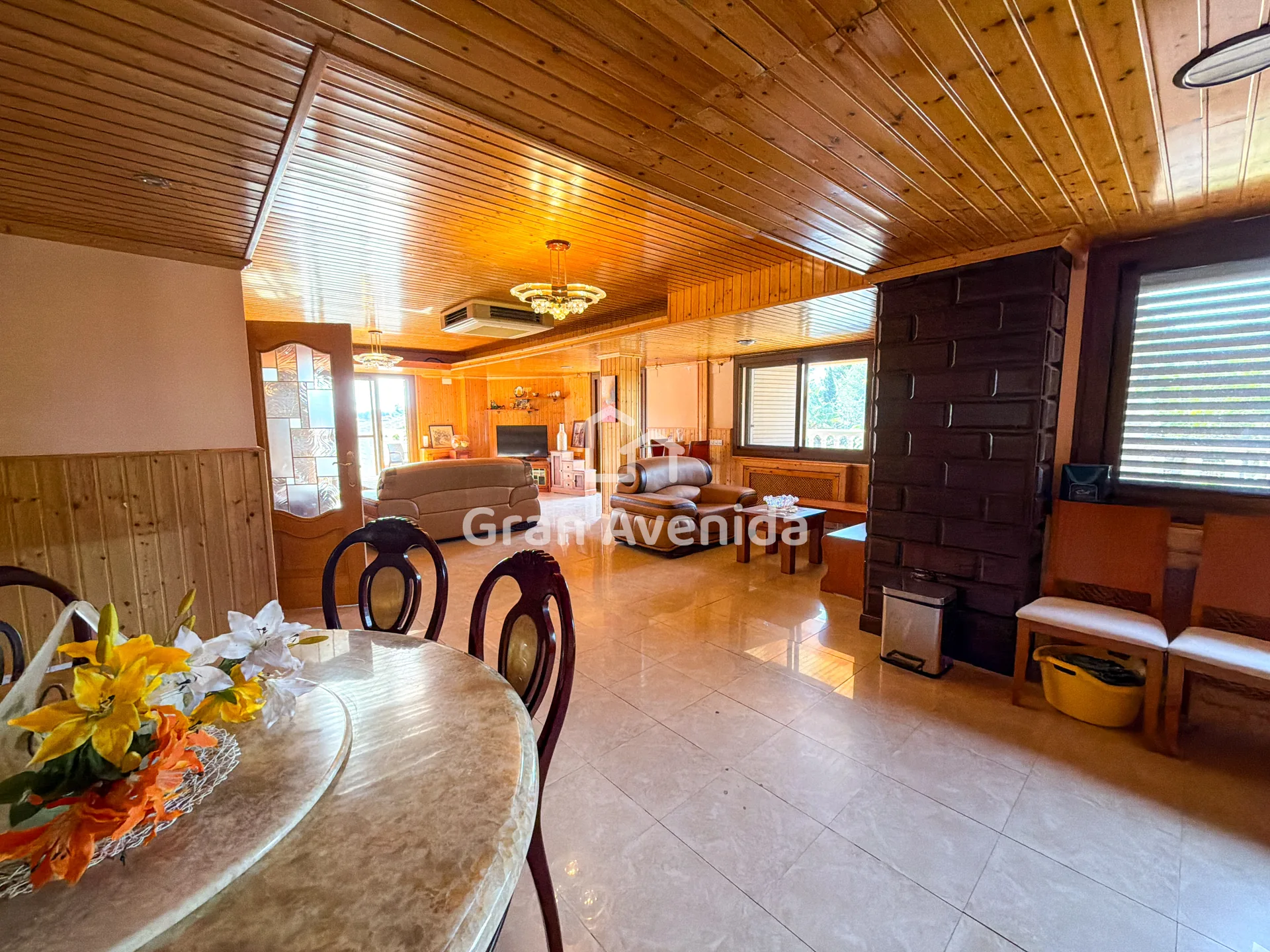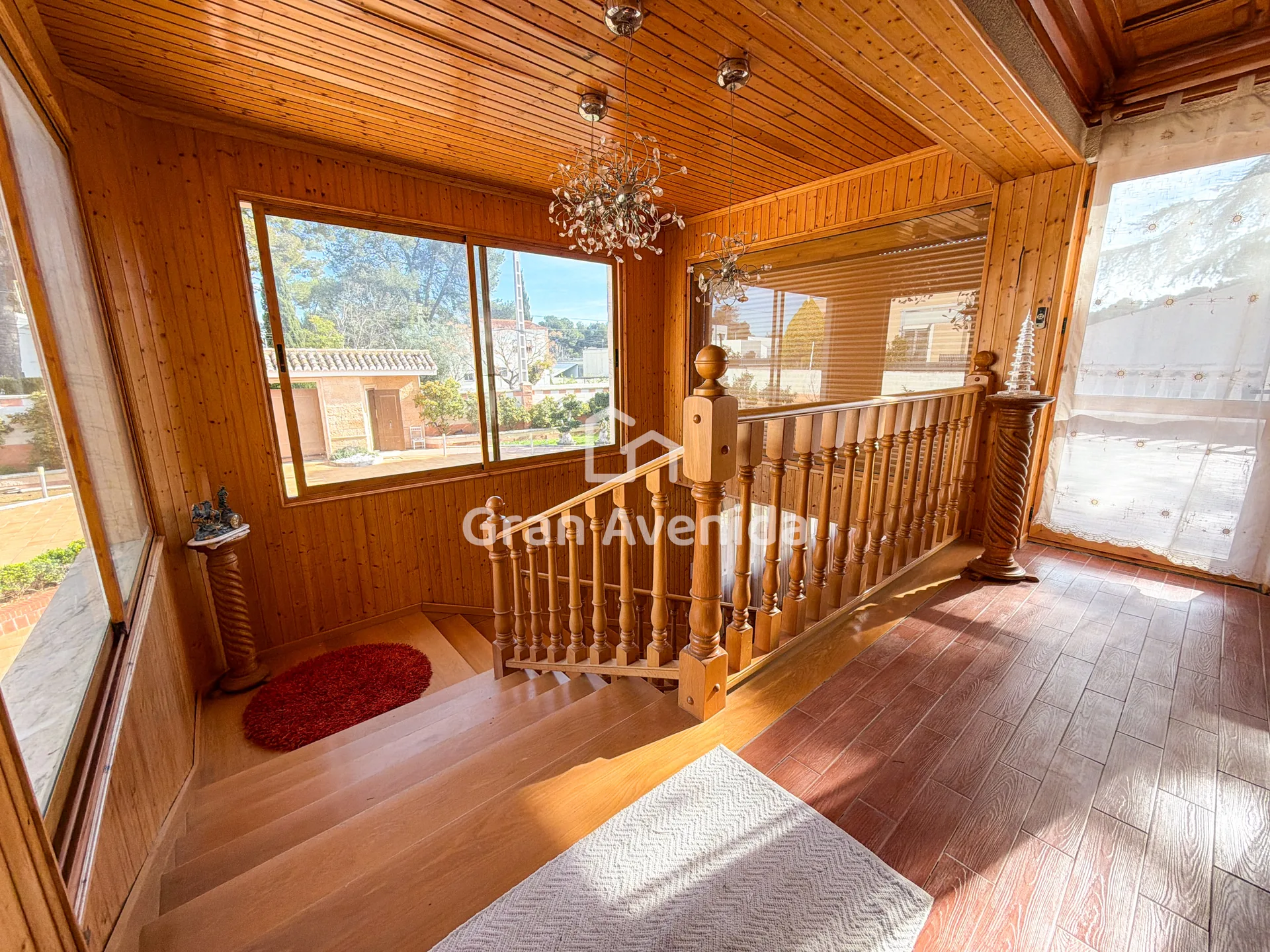En la planta superior la vivienda se organiza en tres zonas independientes con un total de siete dormitorios, varios de ellos con acceso a terraza, tres baños completos y distintas zonas de estar. Una distribución con mucha capacidad, adaptable a diferentes necesidades familiares.