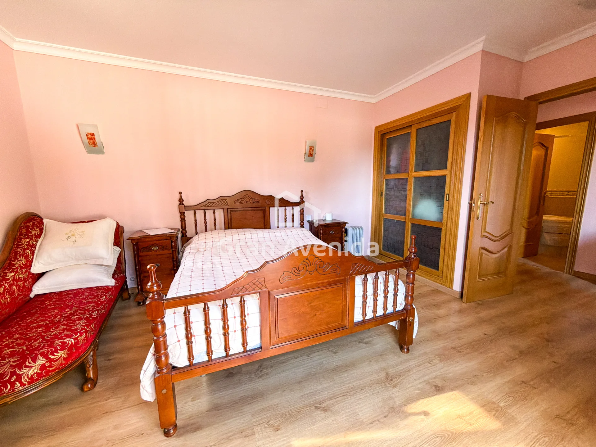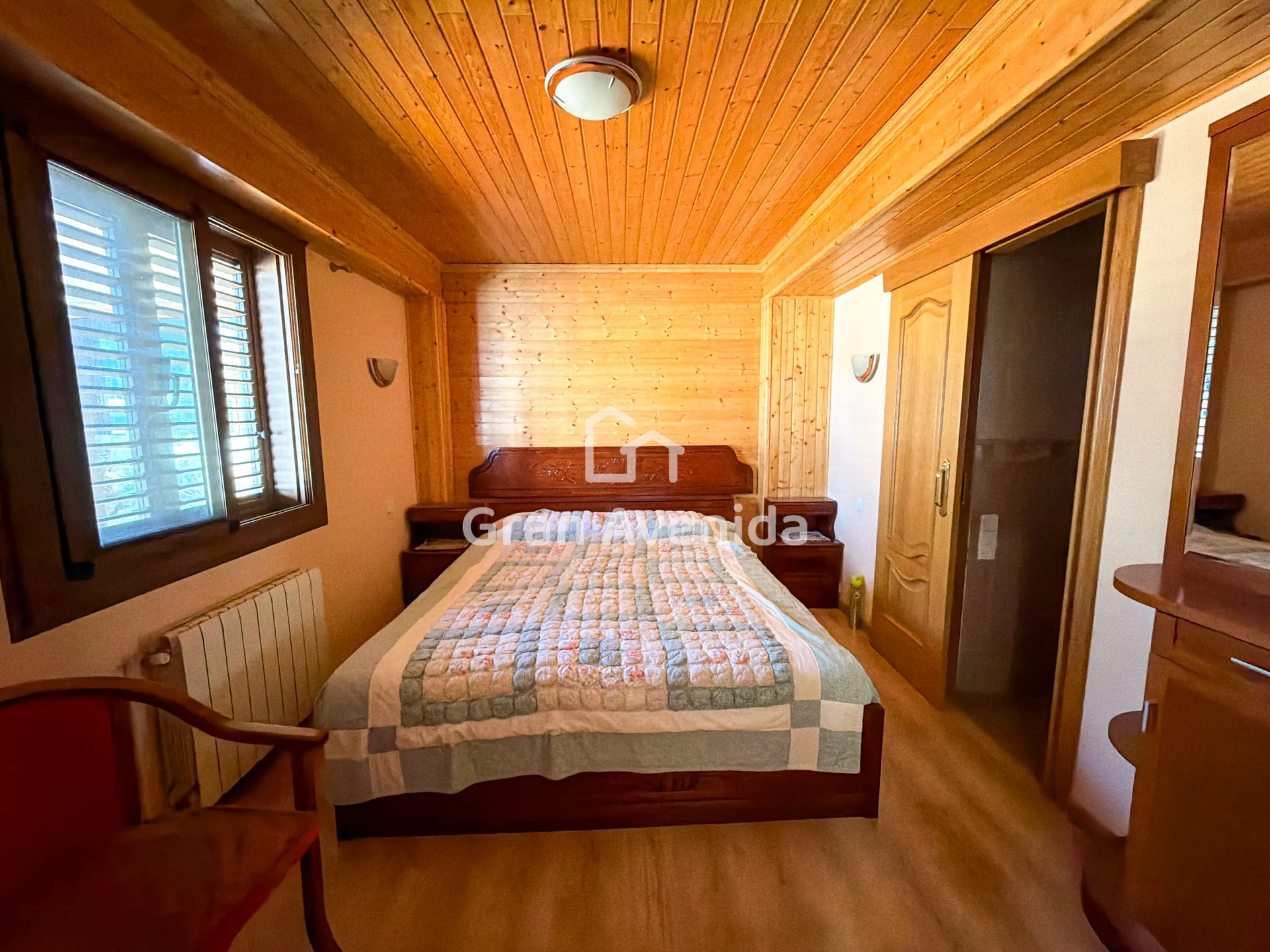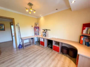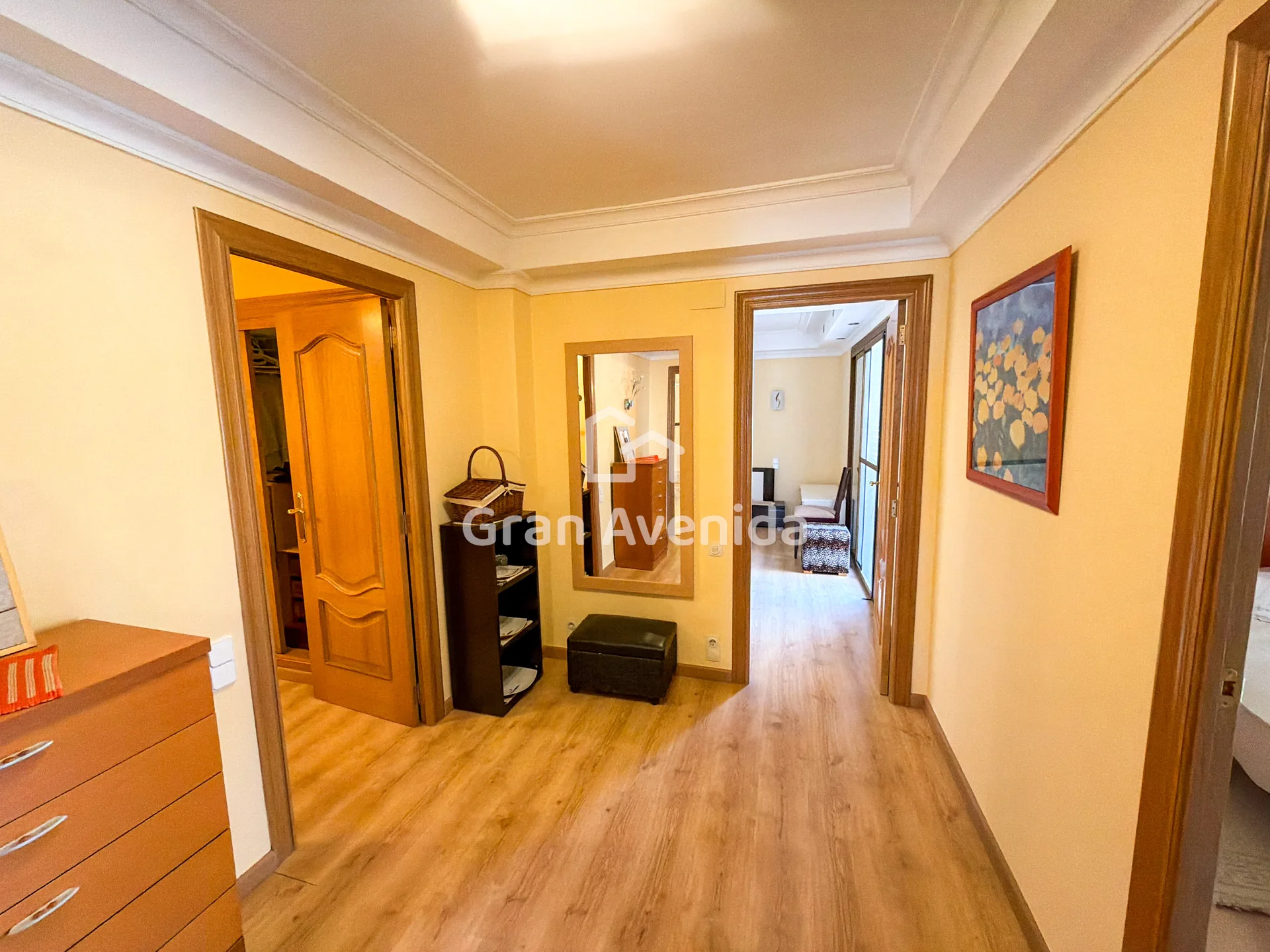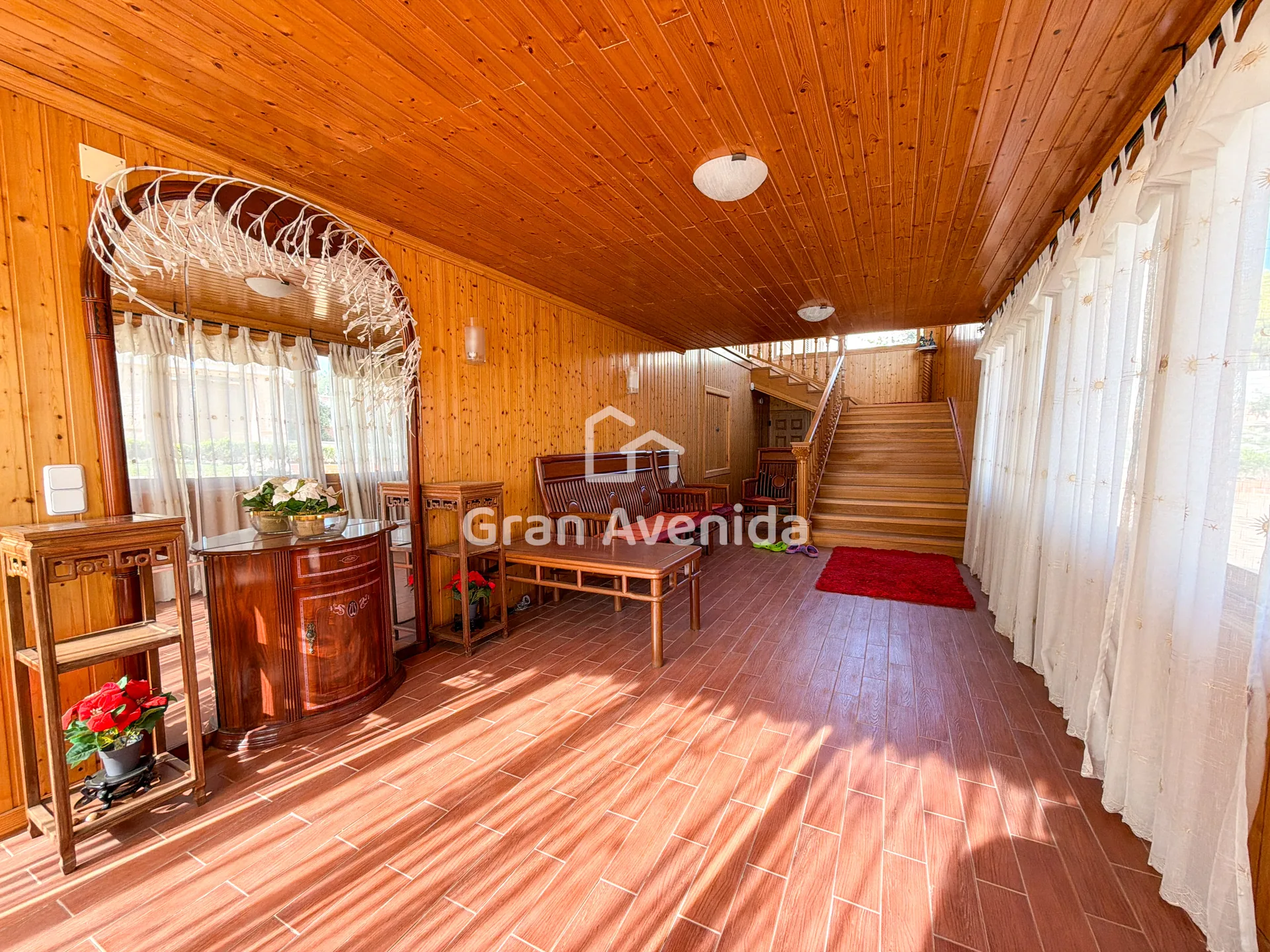 En la planta superior la vivienda se organiza en tres zonas independientes con un total de siete dormitorios, varios de ellos con acceso a terraza, tres baños completos y distintas zonas de estar. Una distribución con mucha capacidad, adaptable a diferentes necesidades familiares.