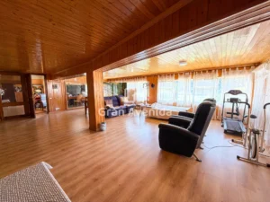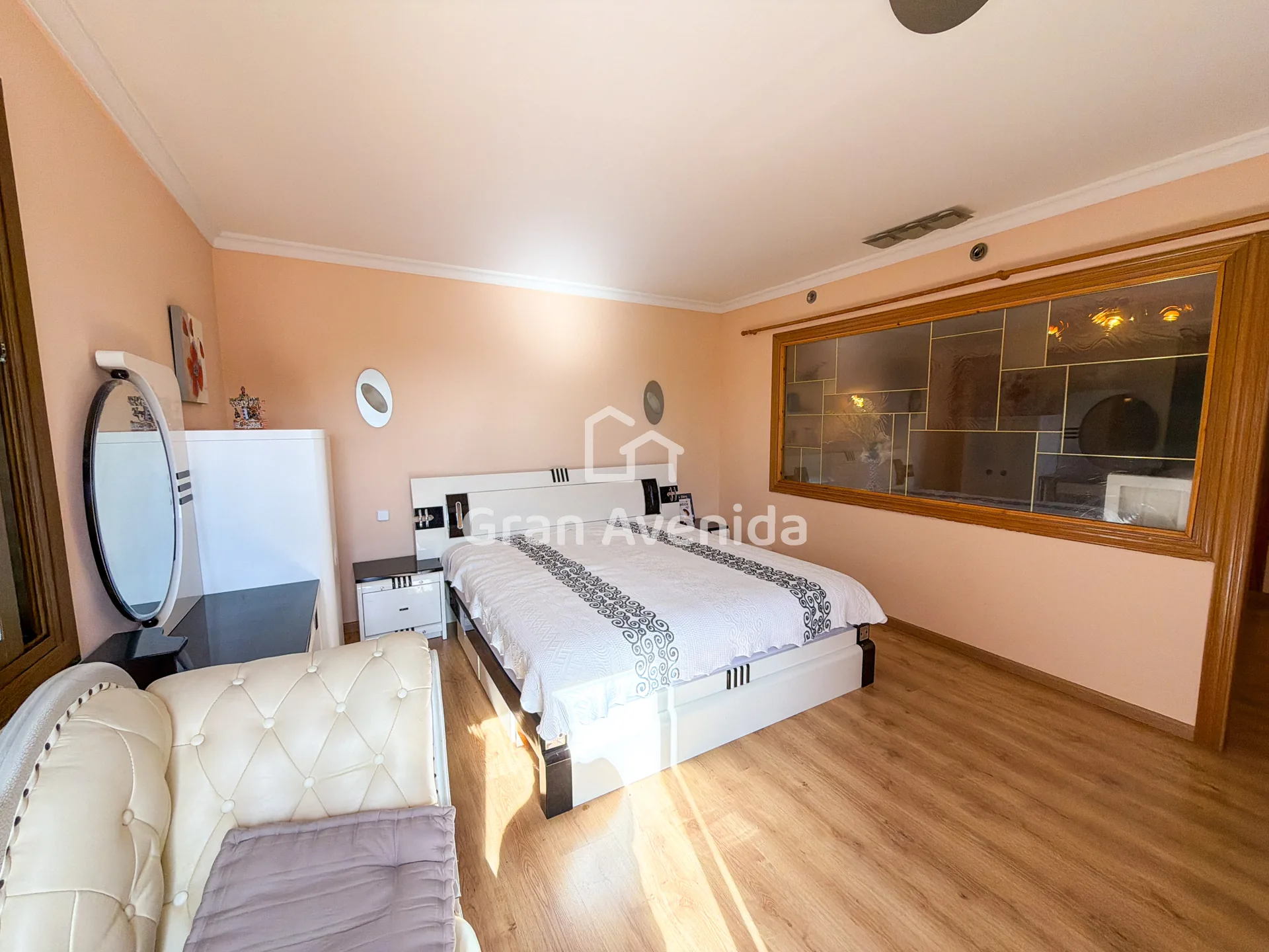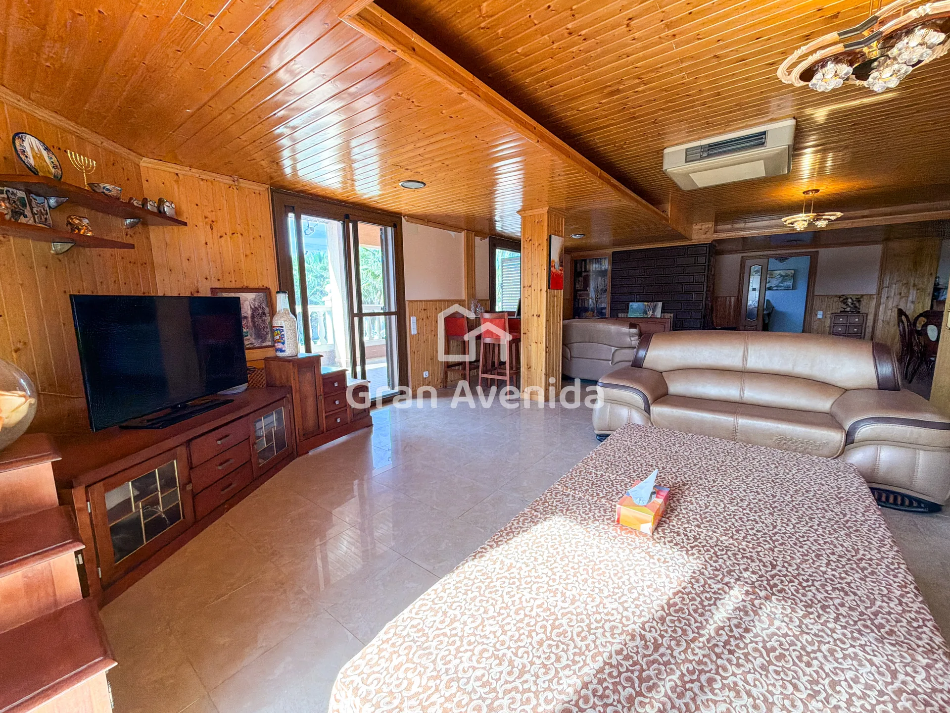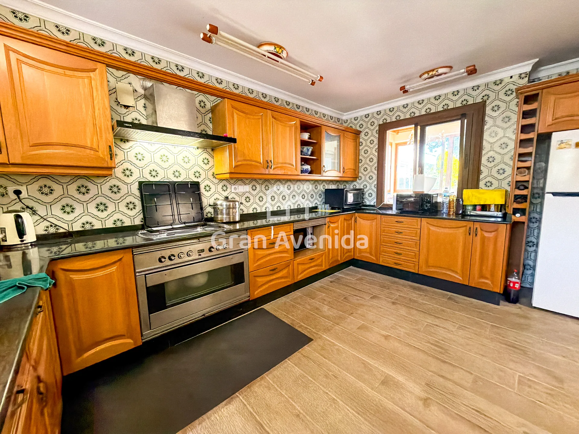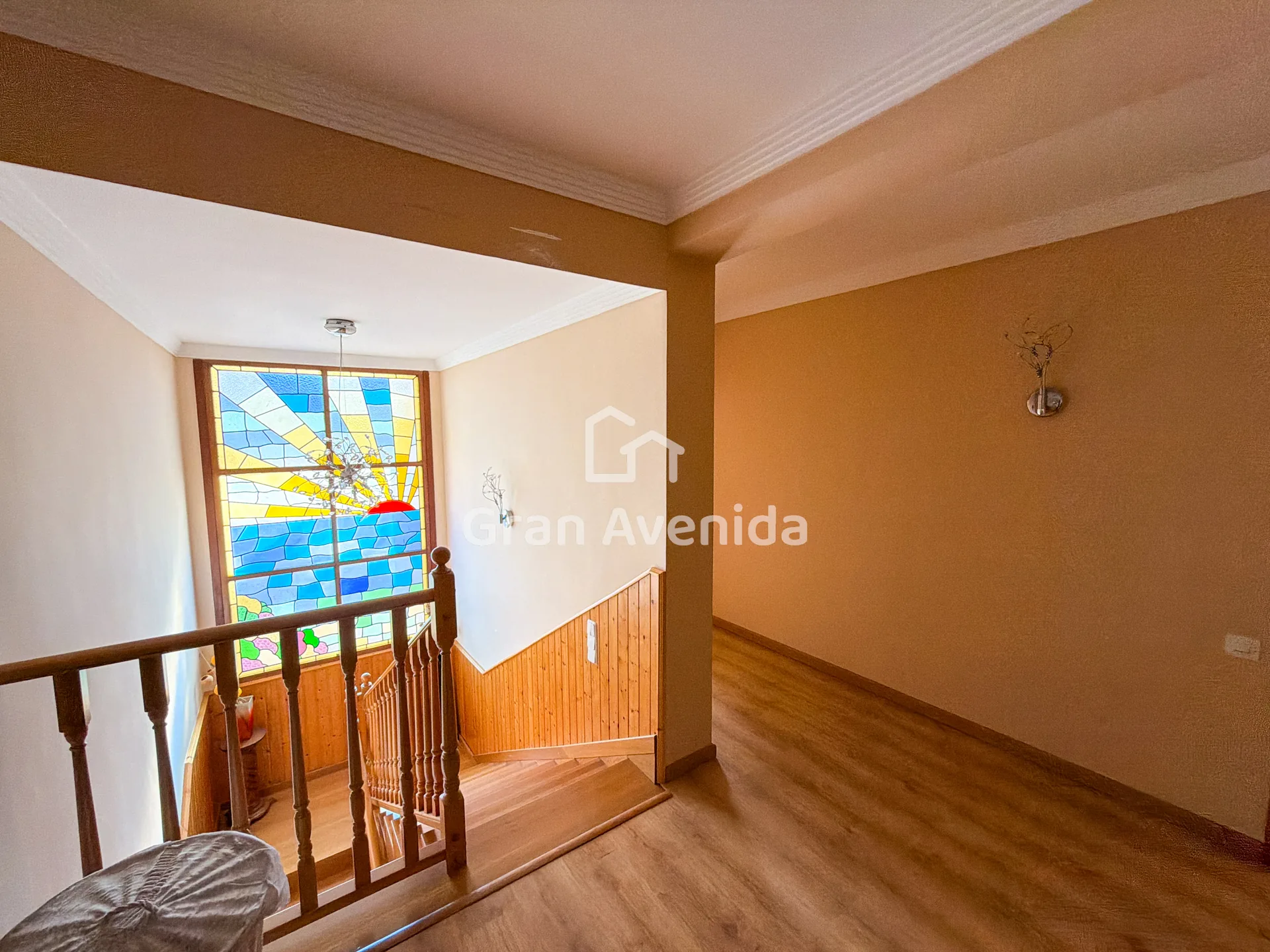 En la planta superior la vivienda se organiza en tres zonas independientes con un total de siete dormitorios, varios de ellos con acceso a terraza, tres baños completos y distintas zonas de estar. Una distribución con mucha capacidad, adaptable a diferentes necesidades familiares.
