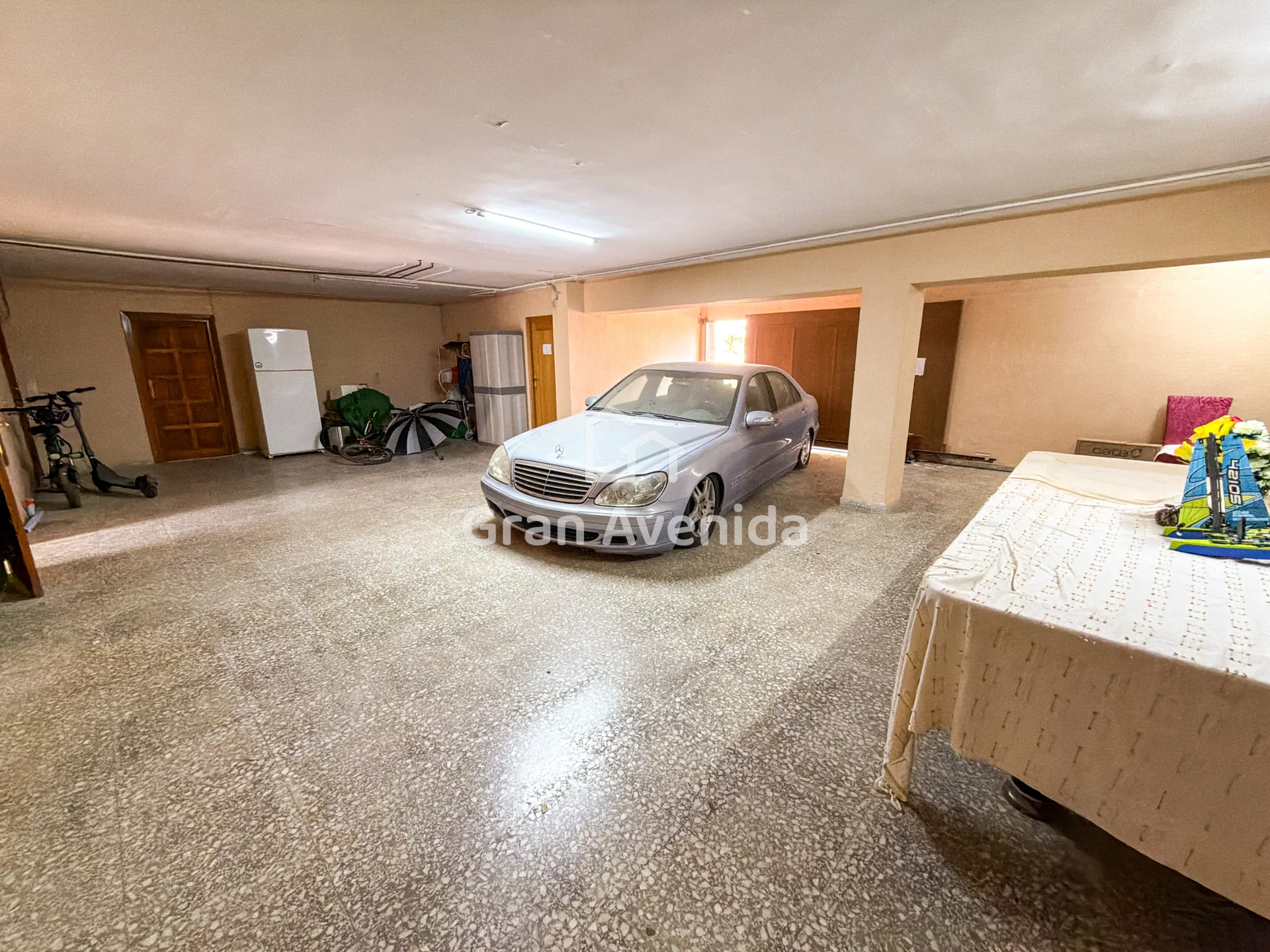 El sótano, accesible desde la planta baja, ofrece garaje para cuatro vehículos, dos trasteros, lavadero, baño completo y una gran zona de ocio con sauna y jacuzzi.